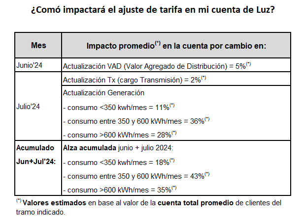 Rango de precios: $130 CLP – $160 CLP por kWh, dependiendo de la zona y el nivel de consumo.